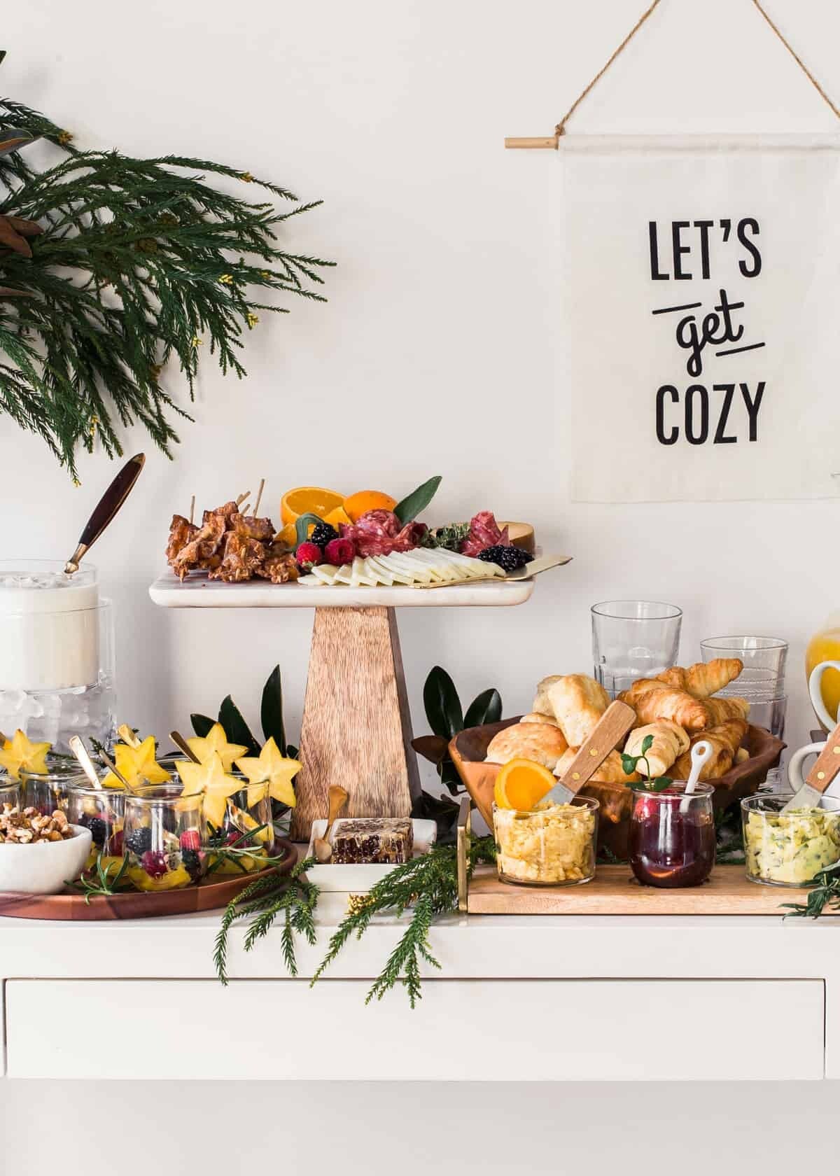 Large Selection of freshly baked croissants and Sweet Danish pastries, delicious range of Fresh Fruits, Organic Yogurt, home-made compote and Berry Granola, Cured Meats and Cheese, Home-made assorted Tray-bakes and Fresh Breakfast Juice